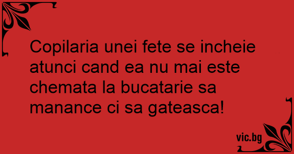 Copilaria unei fete se incheie atunci cand ea nu mai este chemata la bucatarie sa manance ci sa gateasca!