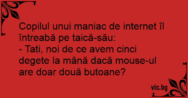 - Tati, noi de ce avem cinci degete la mână dacă mouse-ul are doar două butoane?