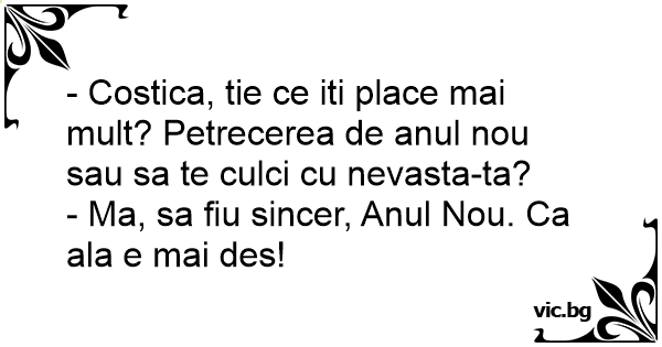 - Costica, tie ce iti place mai mult? Petrecerea de anul nou sau sa te culci cu nevasta-ta?
