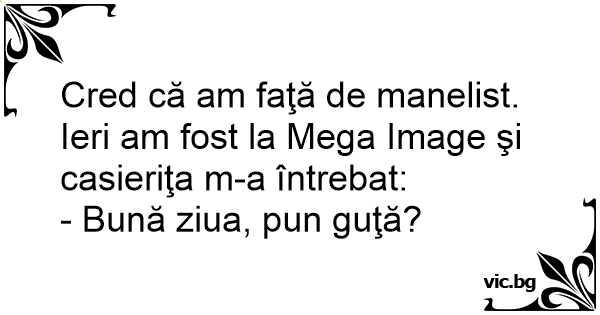 Cred că am faţă de manelist. Ieri am fost la Mega Image şi casieriţa m-a întrebat: