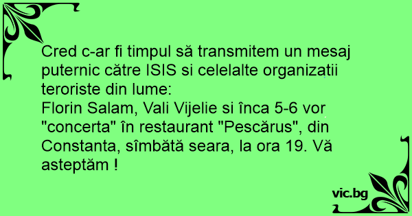Cred c-ar fi timpul să transmitem un mesaj puternic către ISIS si celelalte organizatii teroriste din lume: