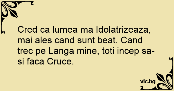 Cred ca lumea ma Idolatrizeaza, mai ales cand sunt beat. Cand trec pe Langa mine, toti incep sa-si faca Cruce.
