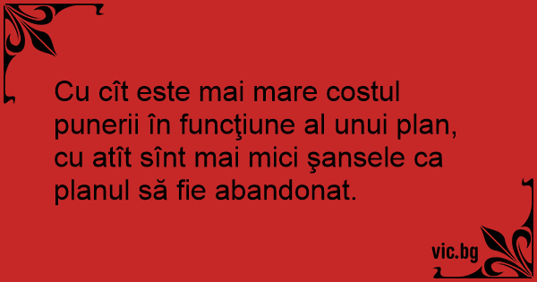 Cu cît este mai mare costul punerii în funcţiune al unui plan, cu atît sînt mai mici şansele ca planul să fie abandonat.