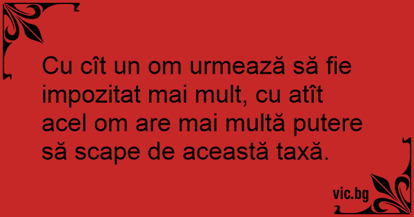Cu cît un om urmează să fie impozitat mai mult, cu atît acel om are mai multă putere să scape de această taxă.