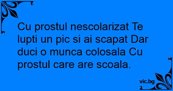 Cu prostul nescolarizat Te lupti un pic si ai scapat Dar duci o munca colosala Cu prostul care are scoala.