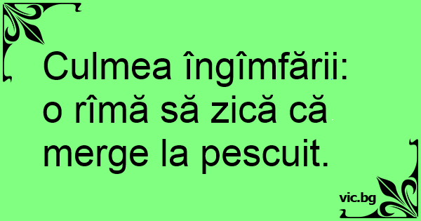 Culmea îngîmfării: o rîmă să zică că merge la pescuit.