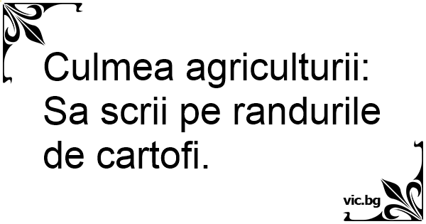 Culmea agriculturii: Sa scrii pe randurile de cartofi.