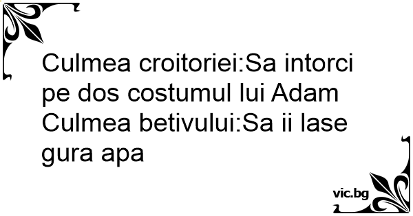 Culmea croitoriei:Sa intorci pe dos costumul lui Adam Culmea betivului:Sa ii lase gura apa