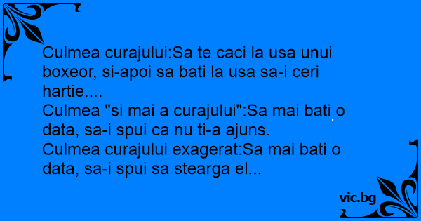 Culmea curajului:Sa te caci la usa unui boxeor, si-apoi sa bati la usa sa-i ceri hartie....