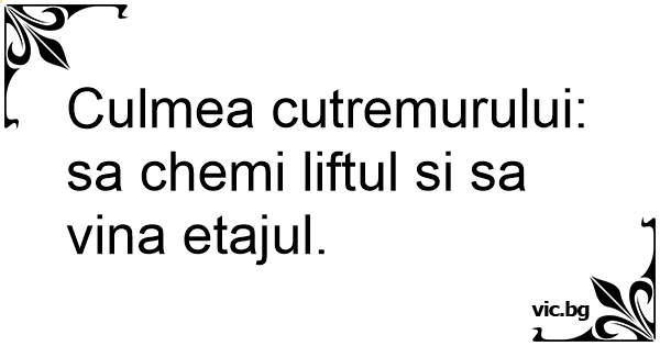 Culmea cutremurului: sa chemi liftul si sa vina etajul.