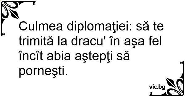Culmea diplomaţiei: să te trimită la dracu' în aşa fel încît abia aştepţi să porneşti.