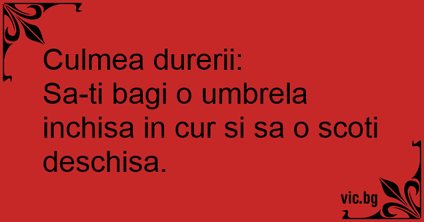 Culmea durerii: Sa-ti bagi...