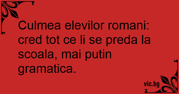 Culmea elevilor romani: cred tot ce li se preda la scoala, mai putin gramatica.