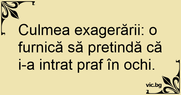 Culmea exagerării: o furnică să pretindă că i-a intrat praf în ochi.