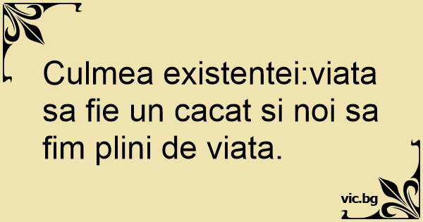 Culmea existentei:viata sa fie un cacat si noi sa fim plini de viata.