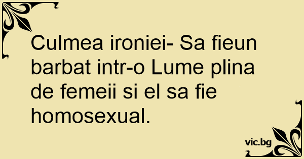 Culmea ironiei- Sa fieun barbat intr-o Lume plina de femeii si el sa fie homosexual.