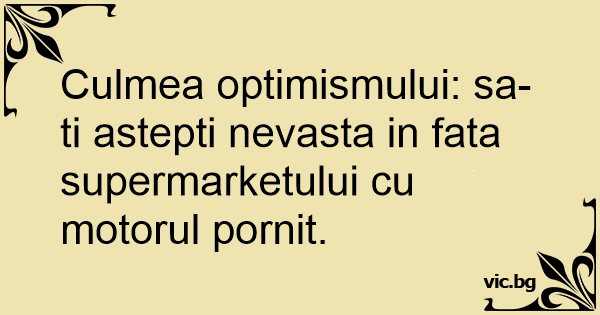 Culmea optimismului: sa-ti astepti nevasta in fata supermarketului cu motorul pornit.