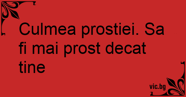 Culmea prostiei. Sa fi mai prost decat tine