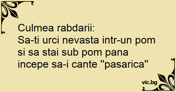 Sa-ti urci nevasta intr-un pom si sa stai sub pom pana incepe sa-i cante ''pasarica''