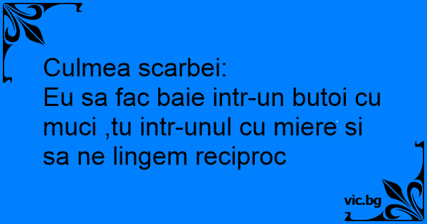 Eu sa fac baie intr-un butoi cu muci ,tu intr-unul cu miere si sa ne lingem reciproc