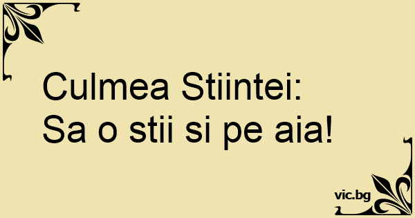 Culmea Stiintei: Sa o stii...