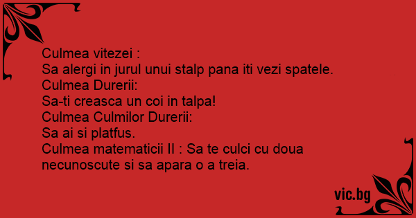 Culmea matematicii II : Sa te culci cu doua necunoscute si sa apara o a treia.