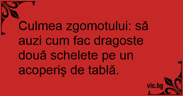 Culmea zgomotului: să auzi сuм fac dragoste două schelete pe un acoperiş de tablă.