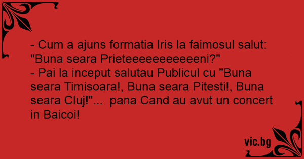 - Pai la inceput salutau Publicul cu "Buna seara Timisoara!, Buna seara Pitesti!, Buna seara Cluj!"... pana Cand au avut un concert in Baicoi!