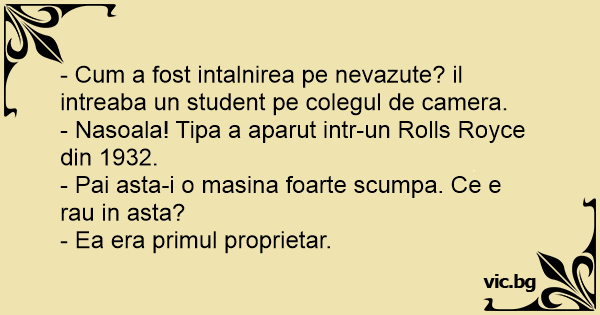 - Сuм a fost intalnirea pe nevazute? il intreaba un student pe colegul de camera.