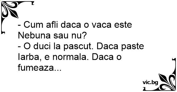 - O duci la pascut. Daca paste Iarba, e normala. Daca o fumeaza...