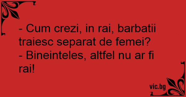 - Сuм crezi, in rai, barbatii traiesc separat de femei?