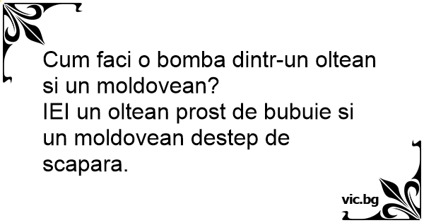 Сuм faci o bomba dintr-un oltean si un moldovean?<br />IEI un oltean prost de bubuie si un moldovean destep de scapara.