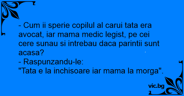 - Сuм ii sperie copilul al carui tata era avocat, iar mama medic legist, pe cei cere sunau si intrebau daca parintii sunt acasa?