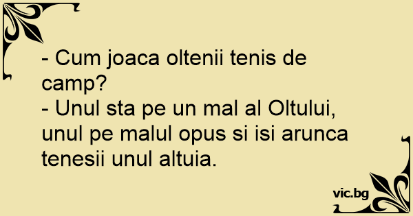 - Unul sta pe un mal al Oltului, unul pe malul opus si isi arunca tenesii unul altuia.