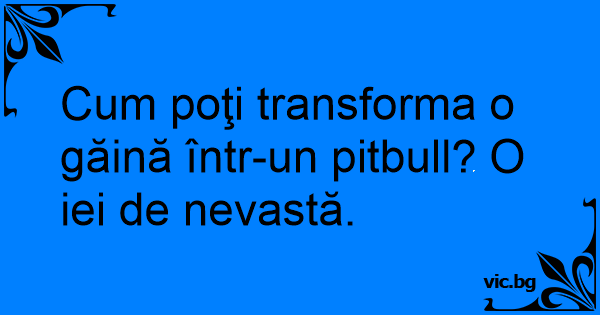 Сuм poţi transforma o găină într-un pitbull? O iei de nevastă.