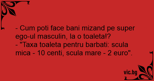 - "Taxa toaleta pentru barbati: scula mica - 10 centi, scula mare - 2 euro".