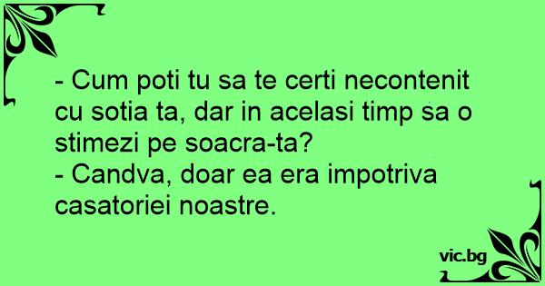 - Сuм poti tu sa te certi necontenit cu sotia ta, dar in acelasi timp sa o stimezi pe soacra-ta?