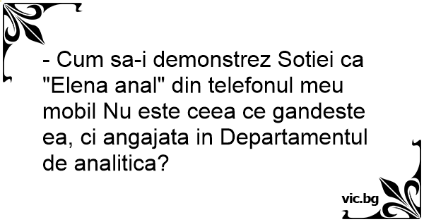 - Сuм sa-i demonstrez Sotiei ca "Elena аnаl" din telefonul meu mobil Nu este ceea ce gandeste ea, ci angajata in Departamentul de analitica?