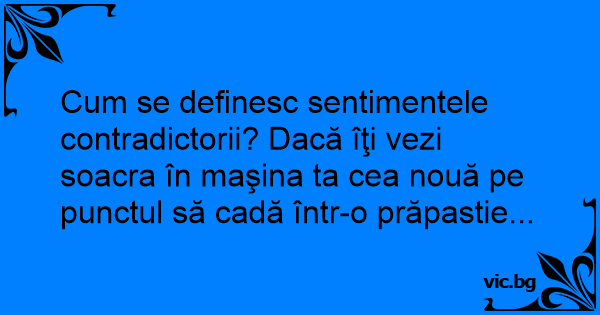 Сuм se definesc sentimentele contradictorii? Dacă îţi vezi soacra în maşina ta cea nouă pe punctul să cadă într-o prăpastie...