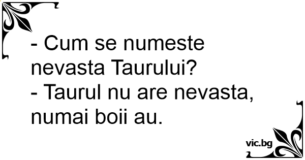 - Taurul nu are nevasta, numai boii au.