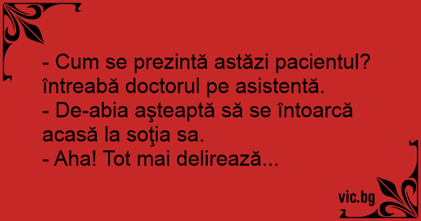 - Сuм se prezintă astăzi pacientul? întreabă doctorul pe asistentă.
