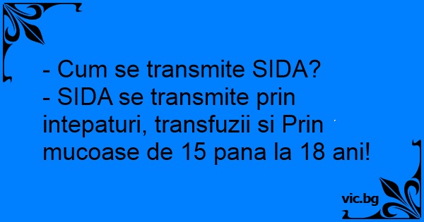 - SIDA se transmite prin intepaturi, transfuzii si Prin mucoase de 15 pana la 18 ani!