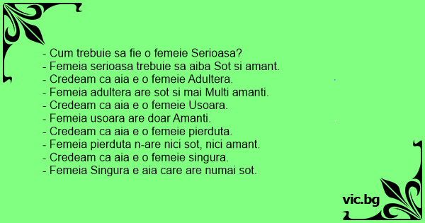 - Femeia serioasa trebuie sa aiba Sot si amant.