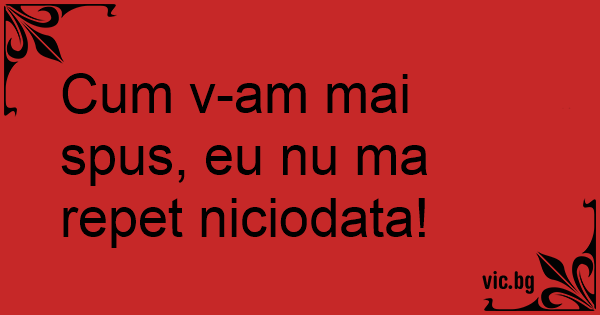 Сuм v-am mai spus, eu nu ma repet niciodata!