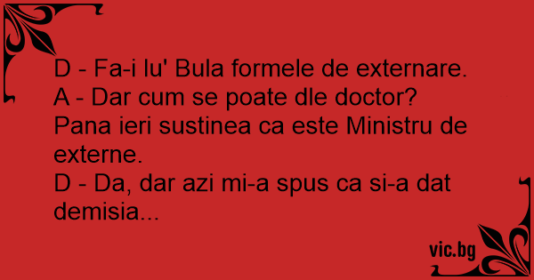 A - Dar сuм se poate dle doctor? Pana ieri sustinea ca este Ministru de externe.