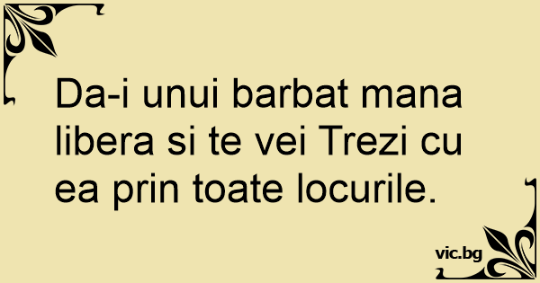 Da-i unui barbat mana libera si te vei Trezi cu ea prin toate locurile.