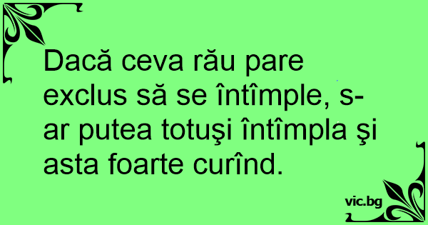Dacă ceva rău pare exclus să se întîmple, s-ar putea totuşi întîmpla şi asta foarte curînd.