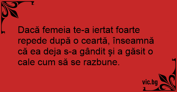 Dacă femeia te-a iertat foarte repede după o ceartă, înseamnă că ea deja s-a gândit şi a găsit o cale сuм să se razbune.