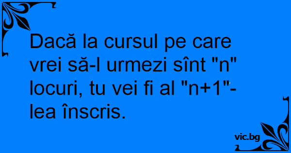 Dacă la cursul pe care vrei să-l urmezi sînt "n" locuri, tu vei fi al "n+1"-lea înscris.