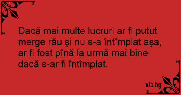 Dacă mai multe lucruri ar fi putut merge rău şi nu s-a întîmplat aşa, ar fi fost pînă la urmă mai bine dacă s-ar fi întîmplat.